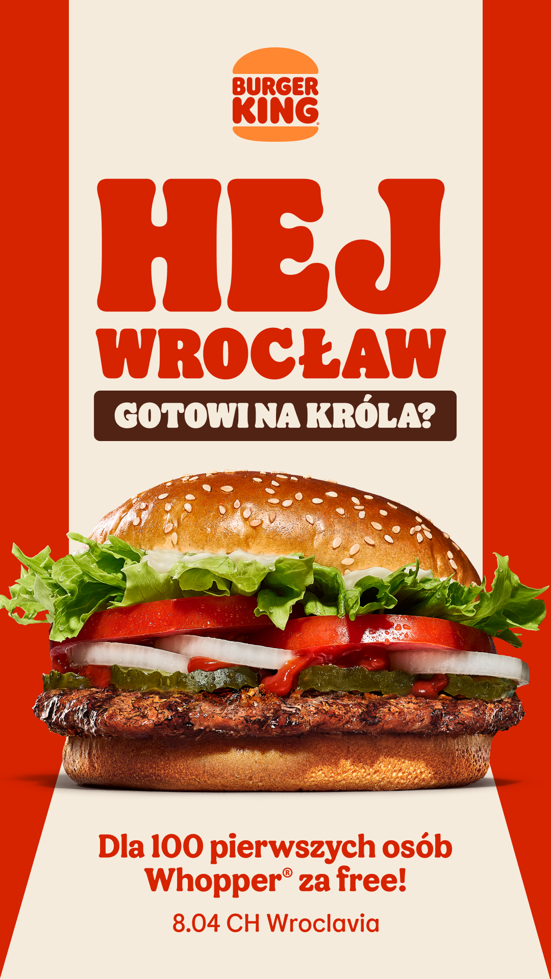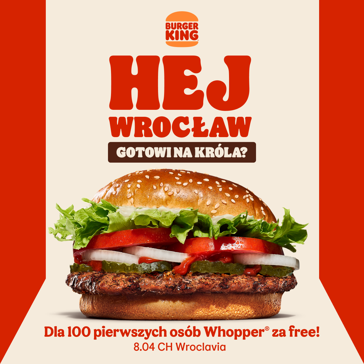 Już 8 kwietnia Burger King® oficjalnie otworzy nową restaurację w centrum handlowym Wroclavia we Wrocławiu. Jest to szósty lokal amerykańskiego brandu w stolicy województwa dolnośląskiego. W ramach świętowania na gości czekają specjalne atrakcje – darmowe Whoppery® dla pierwszych 100 osób, strefa retro gier inspirowana klasycznymi salonami arcade, a także… roczne vouchery na kultowego burgera marki!